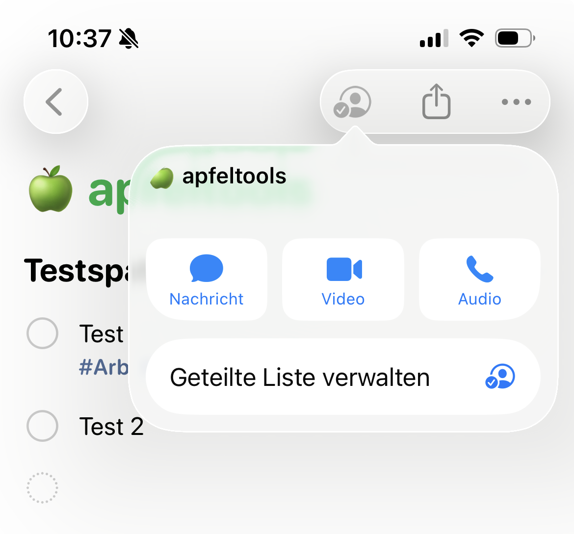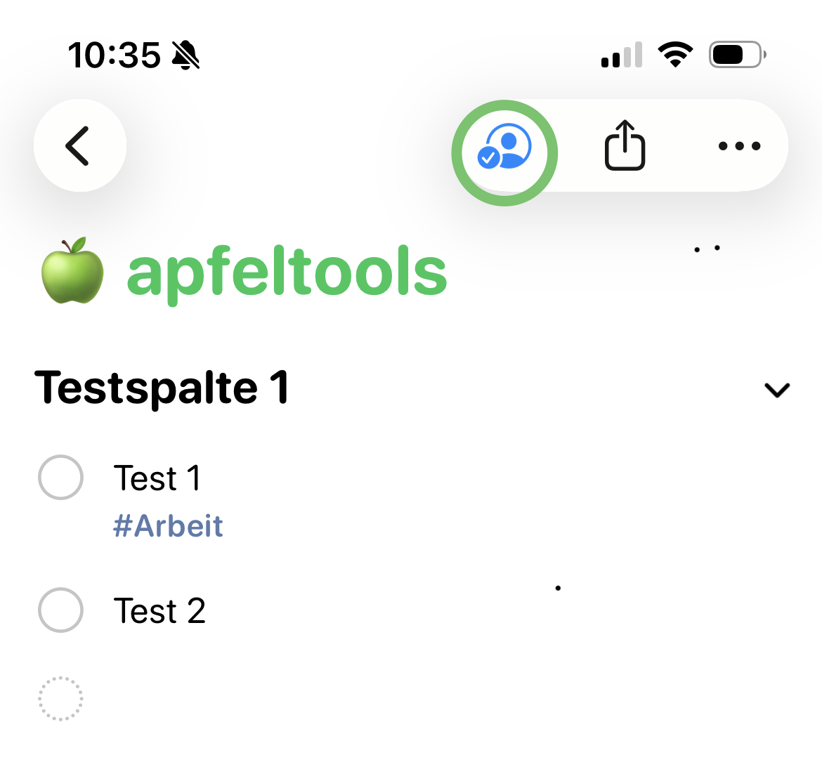 In der Liste selber erkennst du das die Liste geteilt wurde daran, das im oberen Bereich ein neues Icon dazu gekommen ist. Über dieses Icon kannst du die Personen dann verwalten.