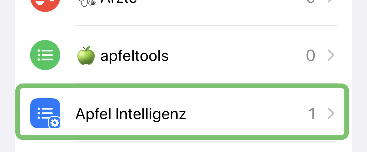 In der Übersichtsseite unter „Meine Listen“ tauchen die „Intelligenten Listen“ ebenfalls auf. Diese erkennst du an einem ganz kleinen Zahnrad-Symbol links im Icon der Liste.